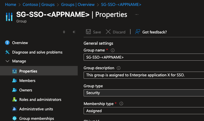 In this step we’re configuring the belonging Entra group and to make sure that SSO is blocked for everyone except this created SSO Entra group.