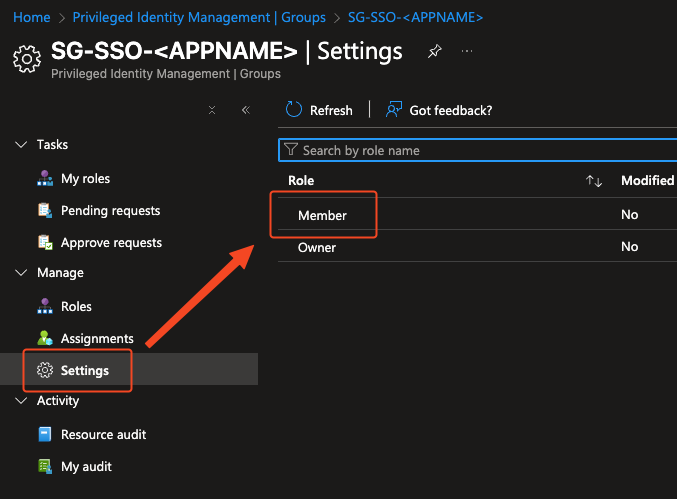 Once onboarded, configure the activation settings for the “Member” role of your security group. These settings define how users activate their privileged access.