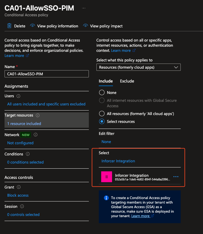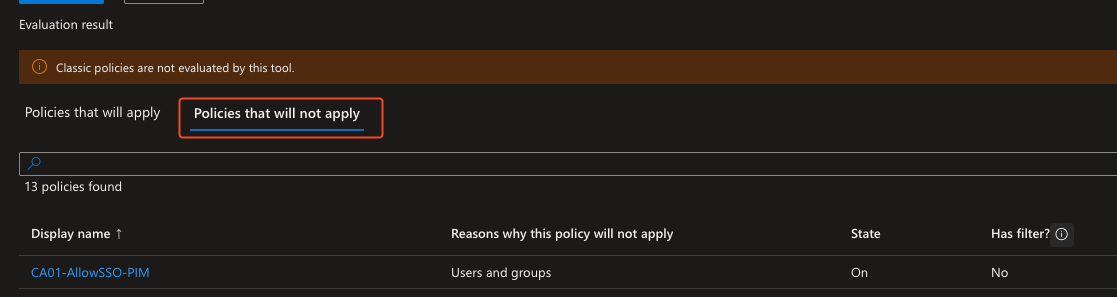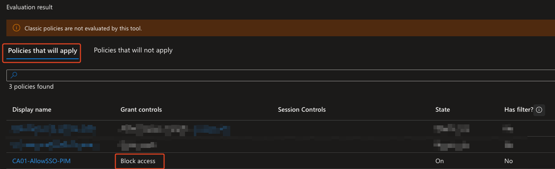 This policy is now active. It will block all users from accessing the application unless they are a member of the excluded group. Because PIM manages temporary membership in that group, this effectively forces all administrative access to go through your PIM activation workflow.