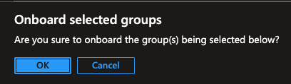 - Select the group and click Manage group, then Onboard group. This action makes the group a PIM-eligible resource.